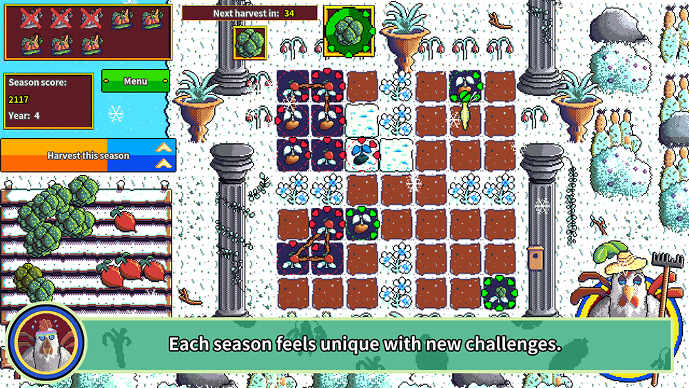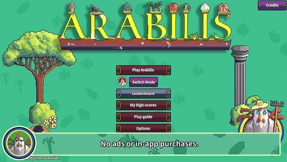 Arabilis has an unique mix of farming, arcade puzzle gameplay combined with rogue-like elements. You are planting, growing and harvesting vegetables in gardens filled with randomized challenges. Harvesting occurs at set intervals as the harvester sweeps the garden to harvest fully grown vegetables, but be careful as ungrown seeds are destroyed. Each season will provide a new garden for you to efficiently farm for points. Each year will increase the difficulty and amount of challenges you face. Arabilis is available as a premium game for Android, iOS, Windows pc and MacOs without any ads or in-app purchases.