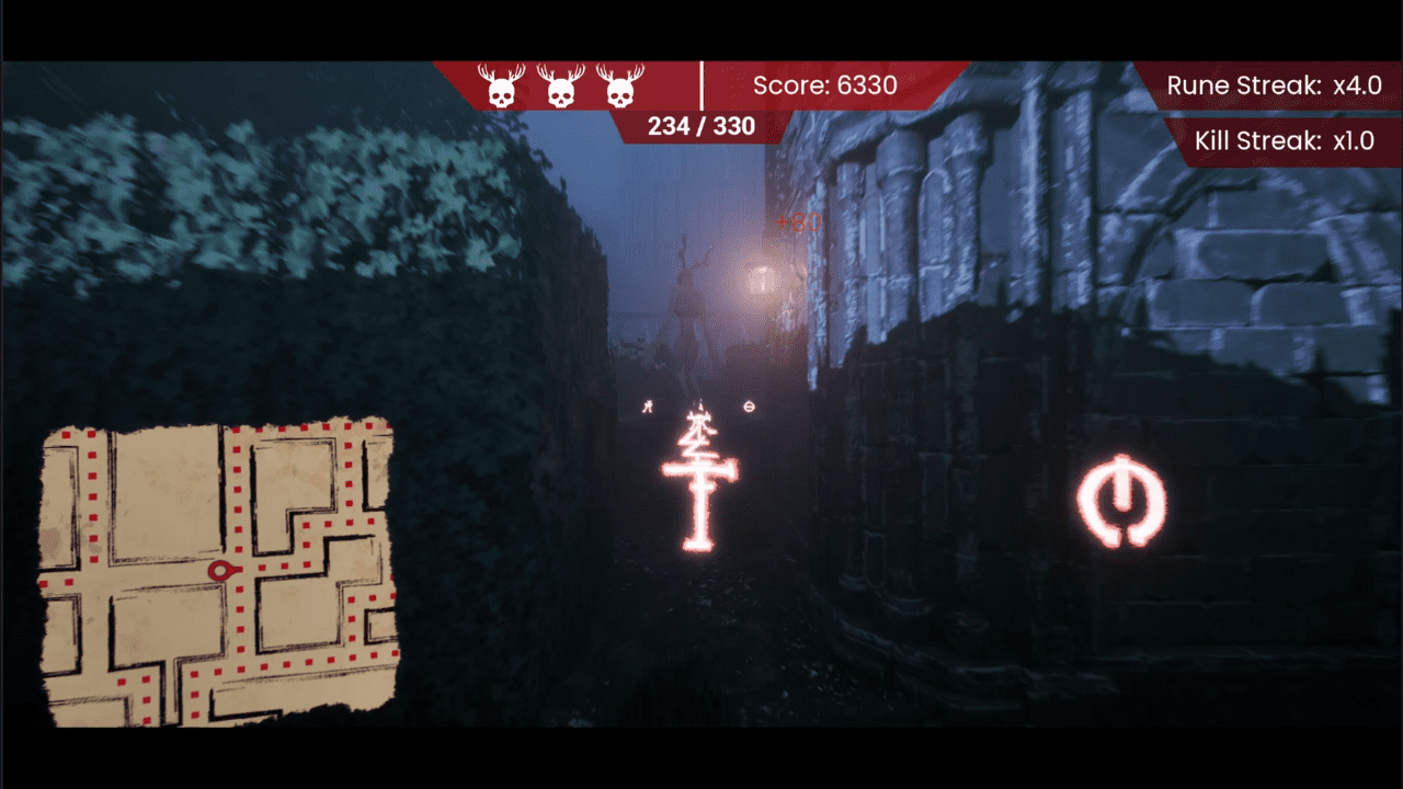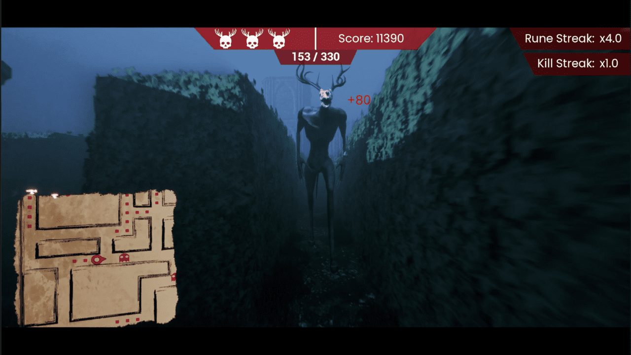 Baelorn is a First-Person Horror Arcade-like Game where you need to collect runes in order to win! Collect Runes and kill Baelorns to gain the highest score and climb the leaderboards! In Baelorn, your goal is to collect all of the runes scattered throughout the maze while being hunted by the deer-like-beasts called Baelorns. Using your trustworthy map and by listening for the beasts around you, you’ll have to navigate safely without being catched, or else you’re dead.