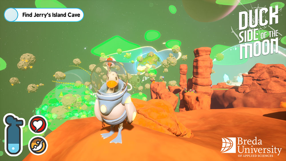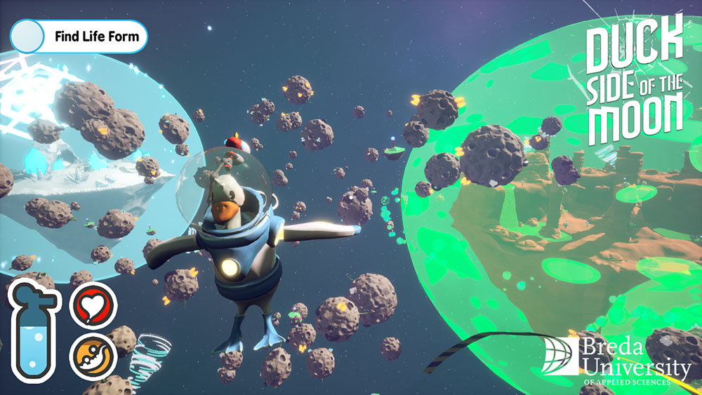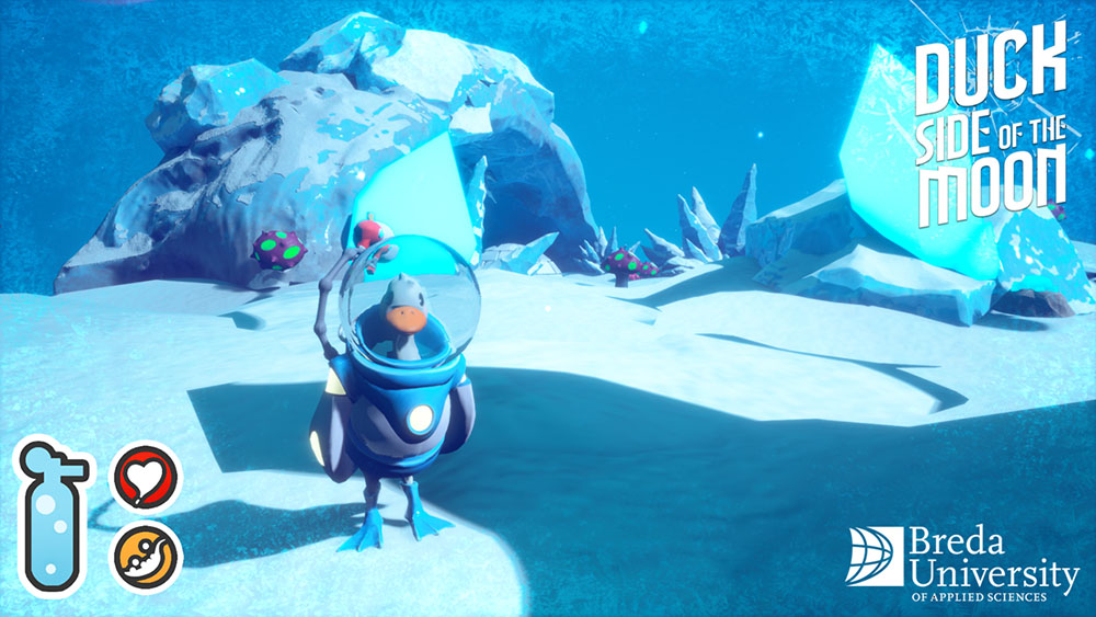 Duckside of the Moon is a survival game about Doug, a talented duck astronaut, who gets sent up into space for a research expedition. On his journey, he gets sucked into a wormhole, and he is transported to a mysterious galaxy. His ship has reset, and he’s stuck. This brave duck must find resources to improve his gear and fix his spaceship, so that he can return home to his friends and family. While doing this, he must overcome dangerous environments as he realizes that he might not be the only one up here…