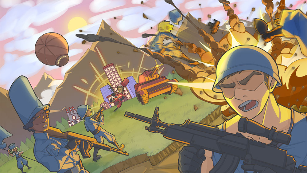 Epicinium is a multiplayer strategy game where players plan their moves simultaneously, making unit combat unique and challenging. Your economy and troops are influenced by the environment and increasingly severe weather effects. Combat destroys grass and fells trees, and crops are trampled as tanks drive towards your opponent to level their cities. Industry accelerates global warming to ludicrous levels, causing more destruction the longer the game goes on. Players balance firepower and preservation of resources, as the victor is scored for how much nature remains when the dust settles.