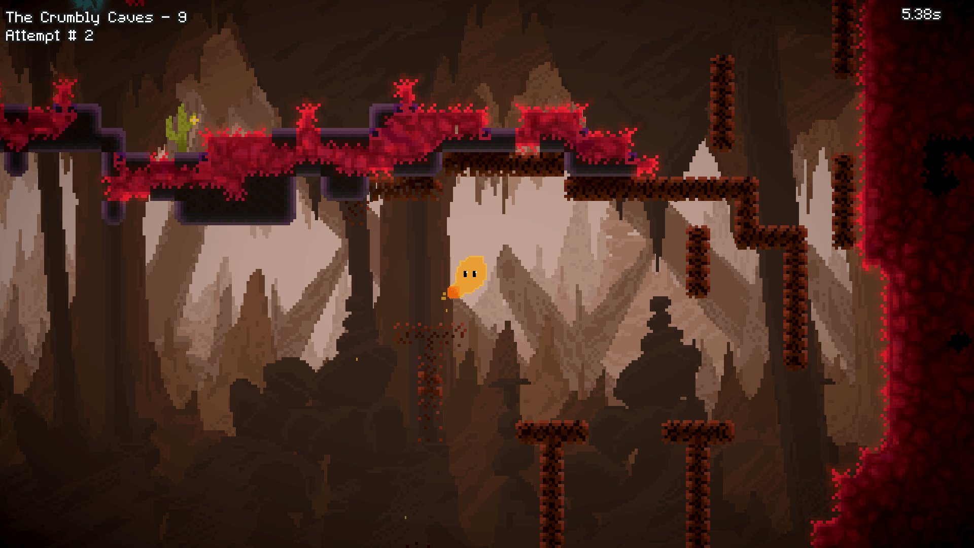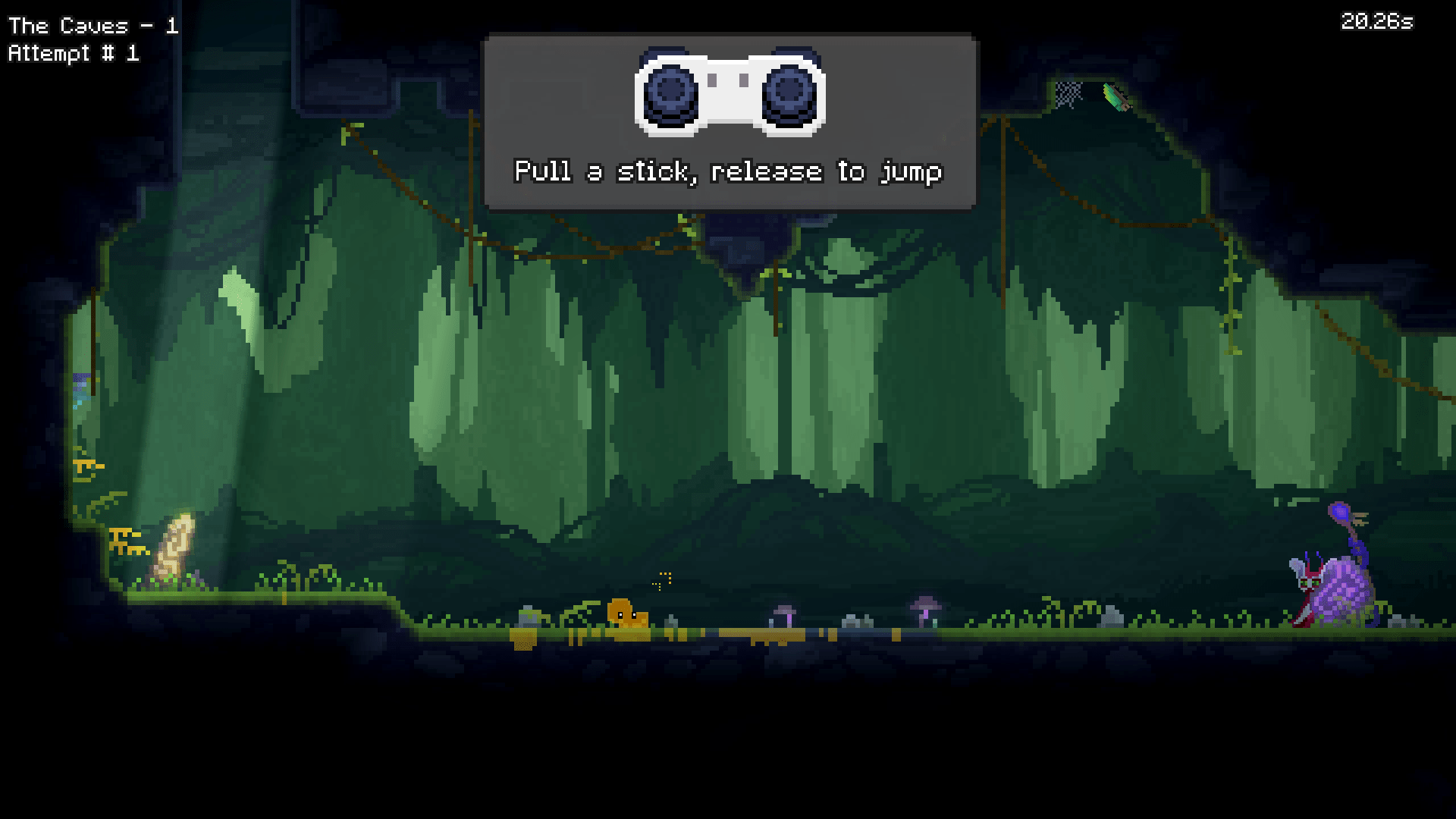 Jello is a physics-based 2d platformer with unique controls. Pull a stick to squish the protagonist, release to jump, roll the stick for the Jello to do a cute wobble-walk. Jello has 5 worlds to explore, each with their mechanics and challenges: Icy cliffs with sliding, waterfalls where you can swim, or deserts where you jump against time with the blocks that crumble as soon as you touch them are some examples. After completing a world, the player can go into the workshop, make, and share their own levels online.