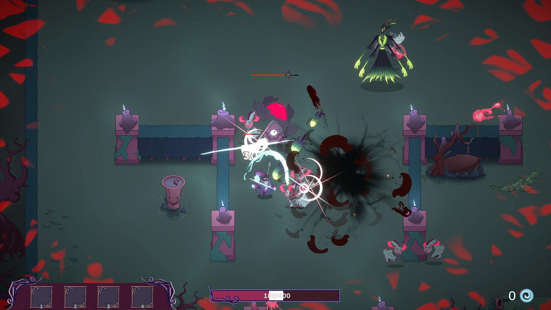 Discover the hand-drawn world of the afterlife – the Spirit Realm – and set out to free its inhabitants of the ever-spreading influence of the Lich. Slash, dash, and shoot your way through the twisting paths and halls of the Lich’s domain. Defeat enemies and become stronger, then make your enemies stronger to then become even more powerful yourself. Evolve your strategies and venture forth, until you finally defeat the Lich and break his all-controlling curse. Every run is different. Do you slash and dash through the rooms, or invoke earth-shattering explosions? Experiment and come up with new combinations on the fly. This game is not a deckbuilder – but it feels like one.