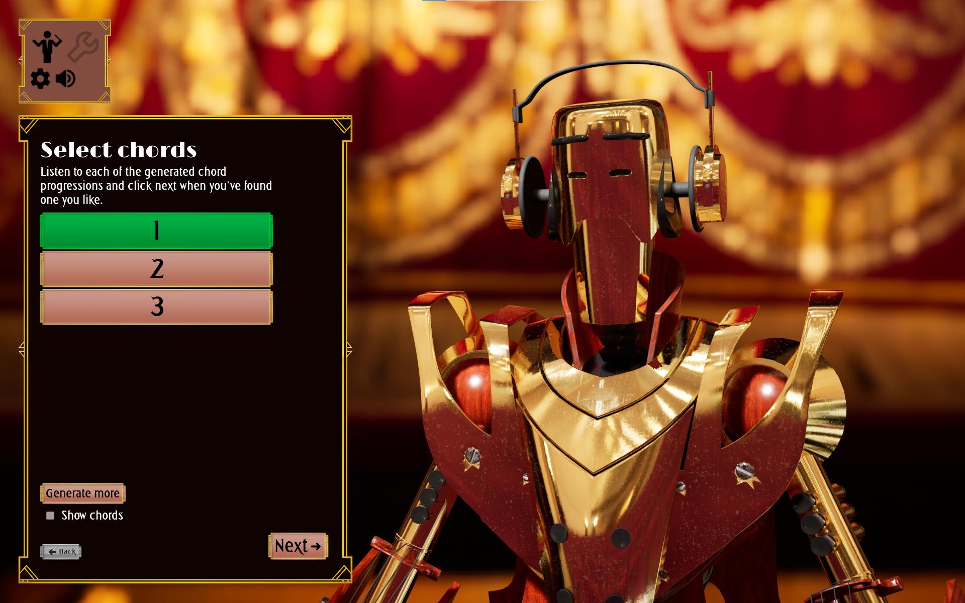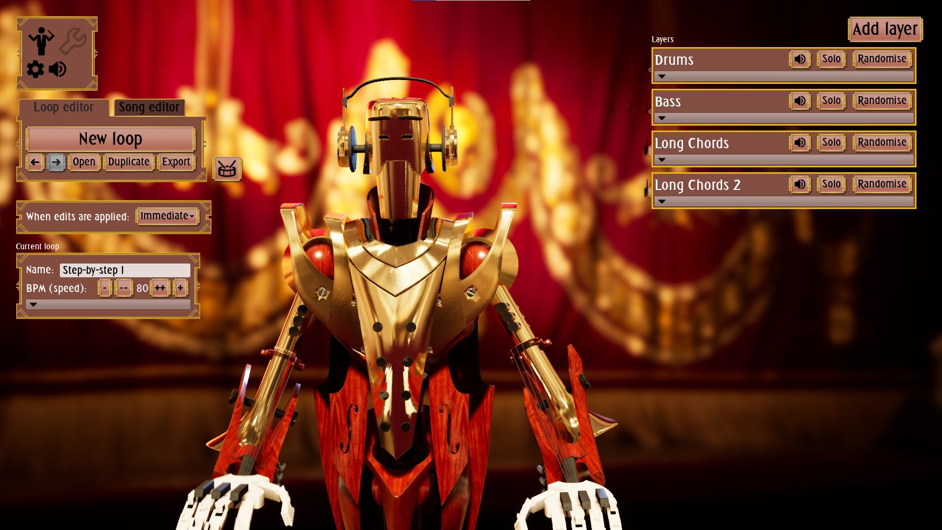 Robo Maestro is a procedural music toy. It’s a revolutionary new way of creating and experiencing music! You tell it what you want, and then the Maestro automatically generates music that fits that. Playing Robo Maestro requires no music knowledge at all: just have fun and hear what happens! Guide the Maestro and create awesome music together with it!