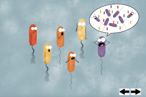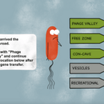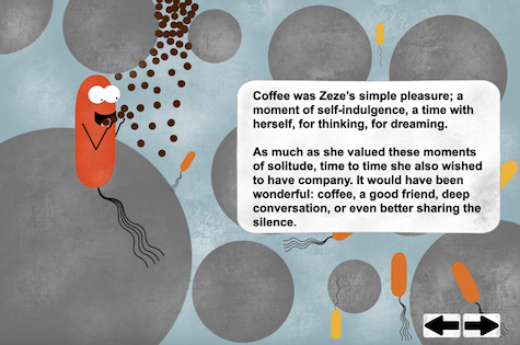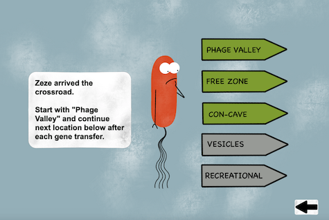 This is an interactive story with puzzles about how bacteria acquire antibiotic resistance genes. The puzzles aim to teach horizontal gene transfer mechanisms in bacteria.
